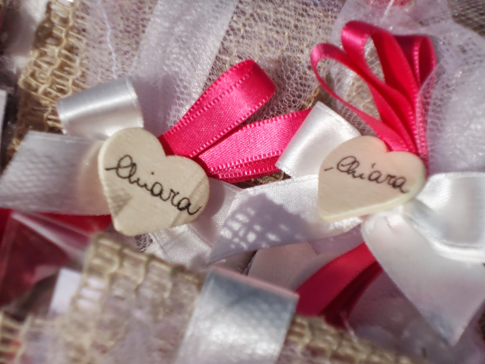 Stamattina è arrivato il momento di Chiara.... che dire Chiara è una ragazzina dolcissima .... d'altronde come la sua mamma .... una super mamma, un'amica, insomma una persona molto cara. Quando la mamma di Chiara è venuta a scegliere le bomboniere mi ha detto ..."voglio qualcosa con il tulle come le bomboniere di una volta" ..... e allora pensa ... pensa mi è venuta l'idea di proporgli il sacchettino in tulle ... tulle si ma in chiave moderna.... all'interno confetti alla mandorla e per finire un rosario fatto a mano da una persona che realizza cosine all'uncinetto veramente deliziose.