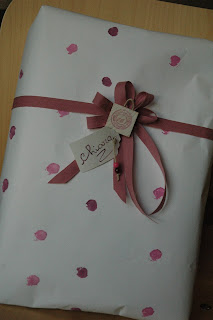 Certo la confezione non può essere banale.... devi un pò reinvertarla. Io non amo particolarmente le carte "da regalo" per intederci quelle stampate. A volte preferisco utilizzare una carta neutra e poi farci qualche decorazione, come in questo caso ho utilizzato una carta bianca e l'ho "colorata" con colori acrilici nelle tonalità del rosa.