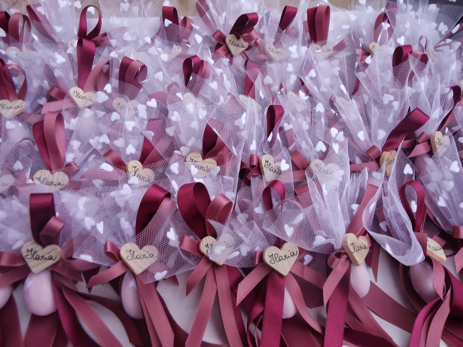Poi l'idea mi è venuta quando Claudia mi ha chiesto i segnaposto per la festa della sua bimba Ilaria.... ho pensato subito a questo tulle e così ho creato questi semplici segnaposto. Semplici ma d'effetto..... teneri e romantici. Che dite?