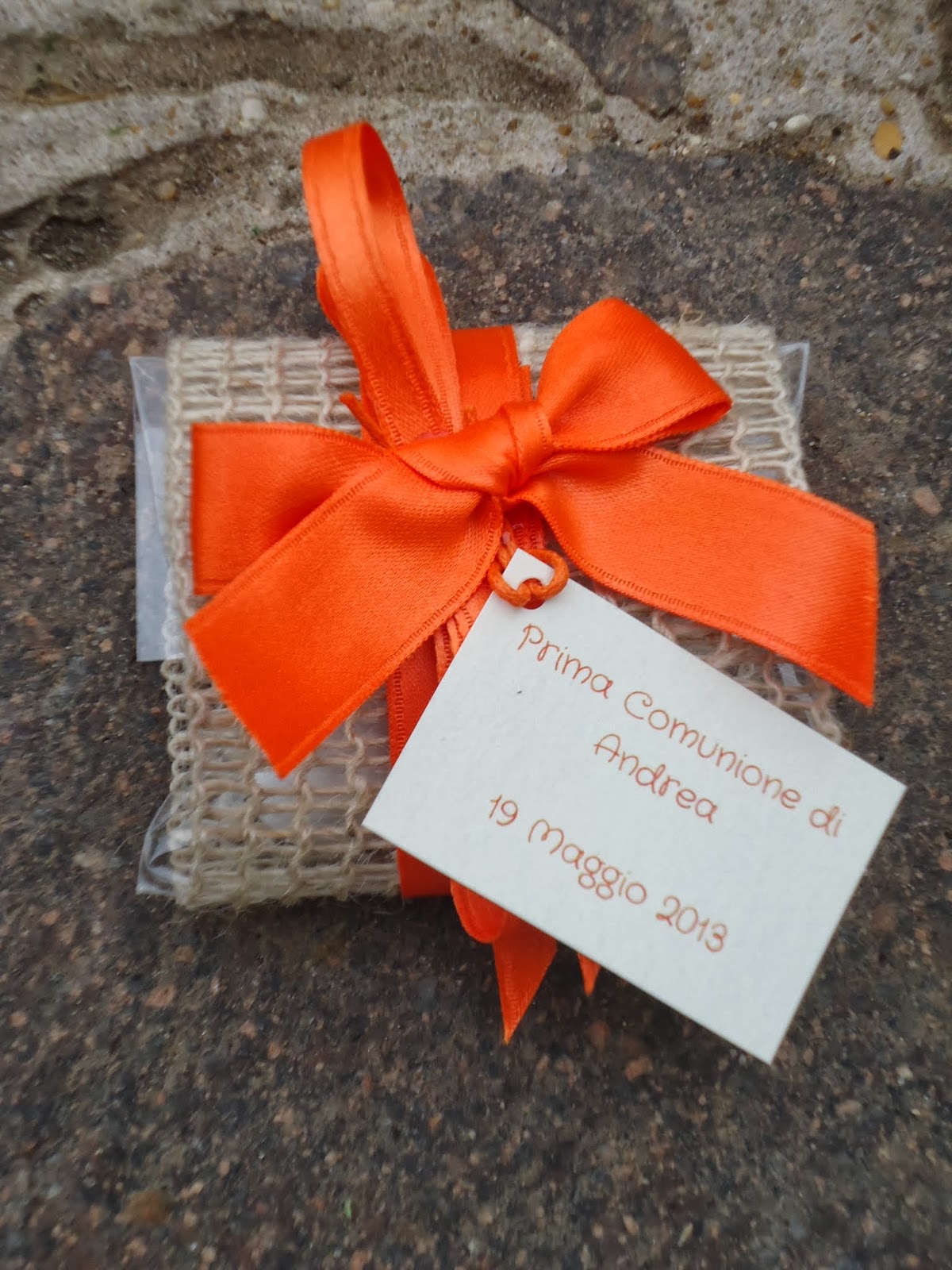 La mamma di Andrea è anche un'amica.... è lo scorso anno si è rivolta a me per realizzare le bomboniere per la Prima Comunione.